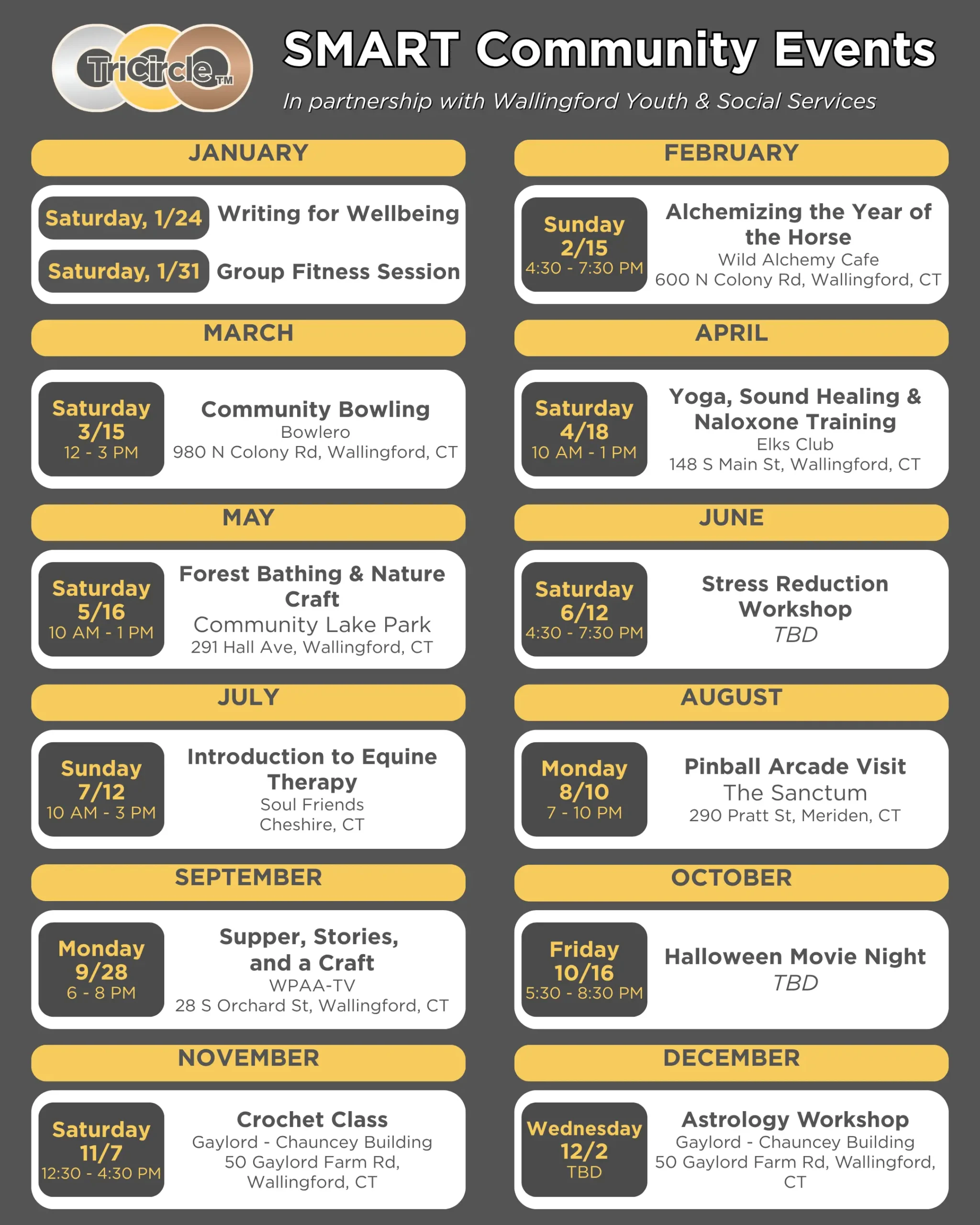 The programs on this page are made possible by the support of Youth Recovery CT, which is grant-funded by the Connecticut Department of Children and Families (DCF) and the Department of Mental Health and Addiction Services (DMHAS) with the support of the Substance Abuse and Mental Health Services Administration (SAMHSA) in collaboration with the Wheeler Clinic.